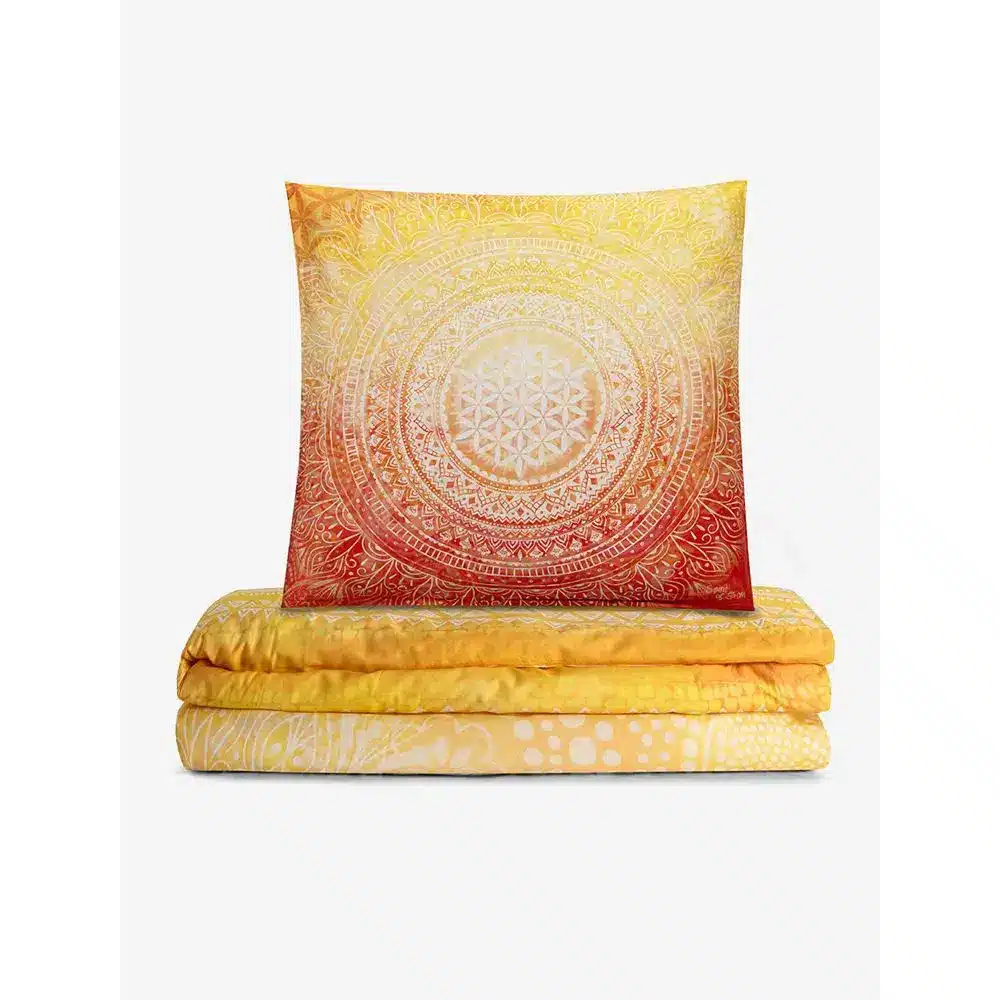 Mit der Bettwäsche Sunrise von Spirit of Om holst du dir die Sonne direkt in dein Schlafzimmer. Die warmen Nuancen von Gelb, Orange und Rot schenken deinem Raum eine lebendige und positive Ausstrahlung. Das harmonische Mandala-Motiv schafft eine Atmosphäre von Geborgenheit und innerer Ruhe – perfekt, um abends loszulassen und morgens mit Freude in den Tag zu starten. Dadurch entsteht ein Raum, der Leichtigkeit ausstrahlt und dich sanft umhüllt. Diese Bettwäsche ist wie ein kleiner Sonnenaufgang für deine Seele – strahlend, warm und voller Lebensenergie.