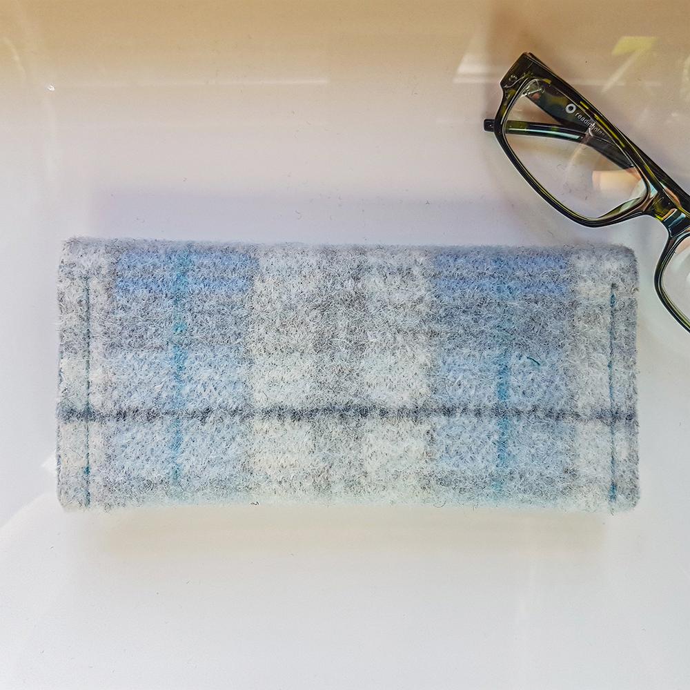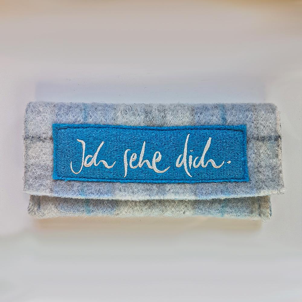 Bewahre deine Brille stilvoll und mit einer Botschaft der Achtsamkeit in dieser besonderen Brillentasche von Sign by Jwala® auf. Diese zauberhafte Brillentasche ist in einem wunderschönen Karo-Muster in zartem Babyblau gehalten und besteht aus hochwertigem 100% Wollwalk. Mit großer Sorgfalt in Tirol genäht und bestickt, ist das Täschchen nicht nur eine praktische Aufbewahrungslösung, sondern auch ein echtes Kunstwerk. Die Stickerei ‚Ich sehe dich‘ verleiht der Tasche eine besondere Bedeutung und erinnert daran, die Welt mit aufmerksamen Augen und einem offenen Herzen zu betrachten.