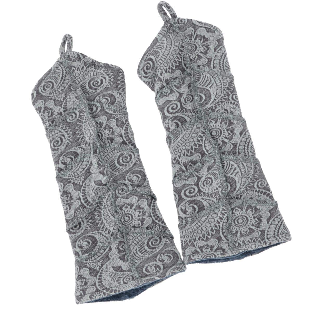 Diese Pulswärmer sind wirklich etwas Besonderes! Auf der einen Seite präsentieren sie ein schönes Paisley-Muster, auf der anderen Seite findest du einen weichen einfarbigen Samt vor, der für eine schlichte, aber dennoch luxuriöse Optik sorgt.