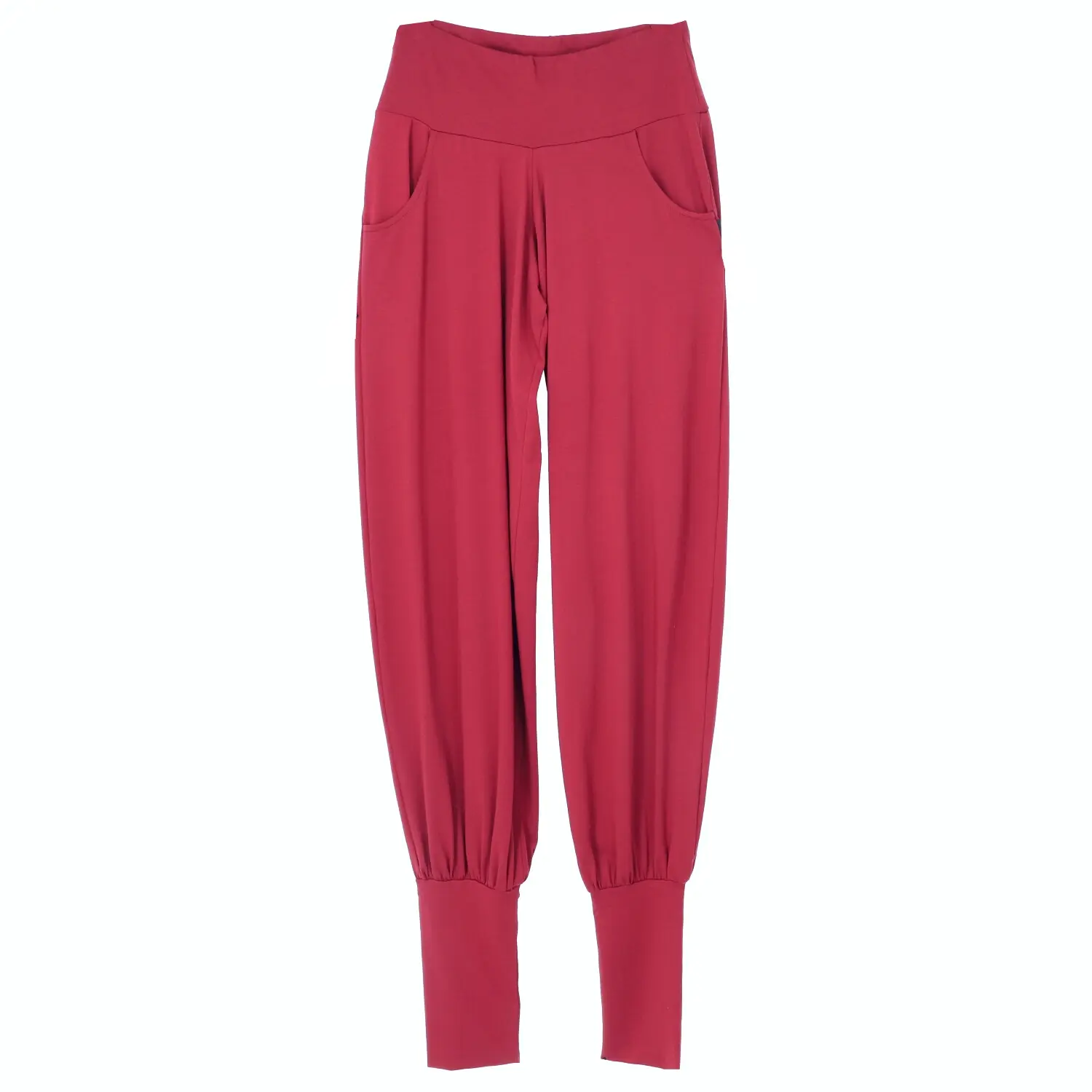 Bequeme Yogahose in Paprika rot mit breitem Bund, langen Beinbündchen und praktischen Taschen aus weicher Bio-Baumwolle.